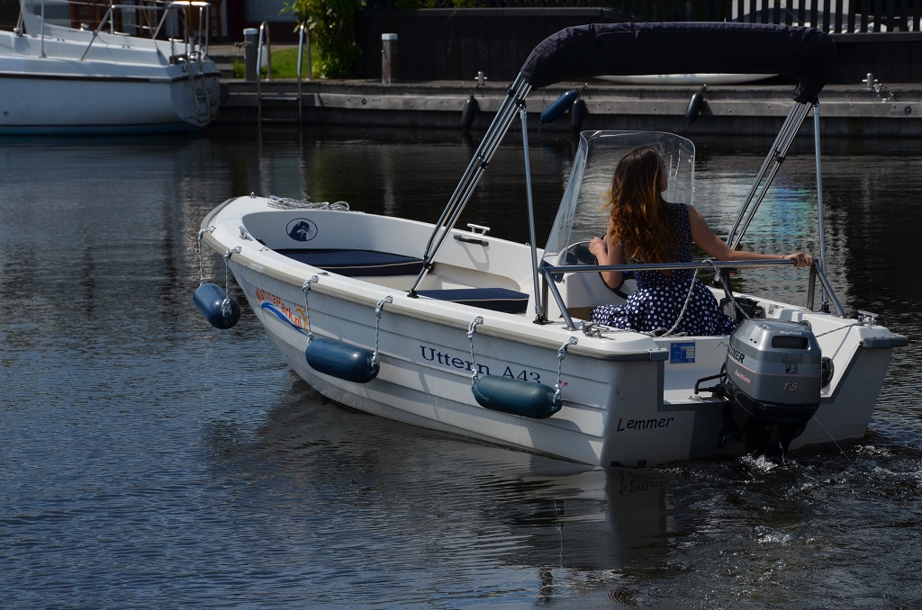 Motorboot Uttern 43 bietet Platz für 4 - 5 Personen. Das Boot hat einen 15 PS Außenbordmotor mit Elektrostarter. Im Boot sind bequeme Polster zum Sitzen. Dies ist ein leicht zu bedienendes Boot. Mit dem Sie und ihre Kinder viel Spassbeim Fahren auf den Friesischen Meeren und Kanälen haben werden.
