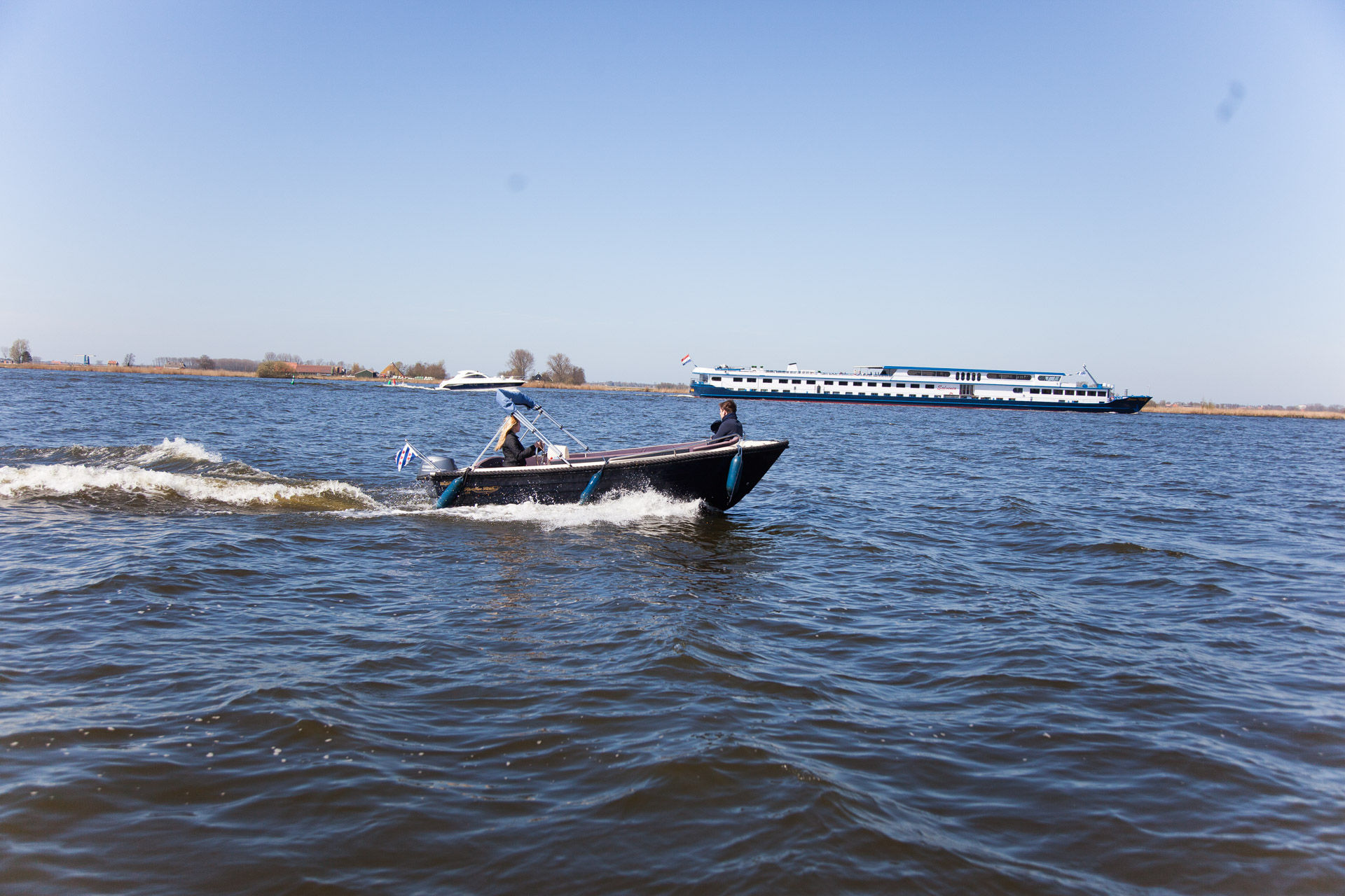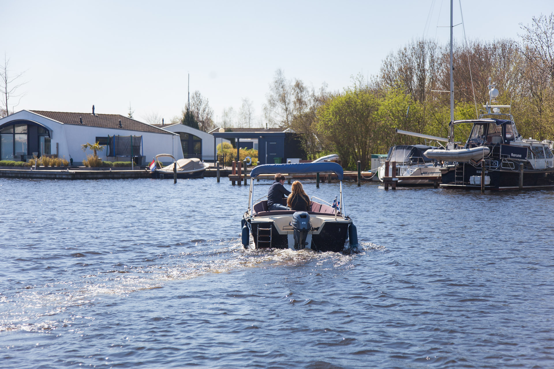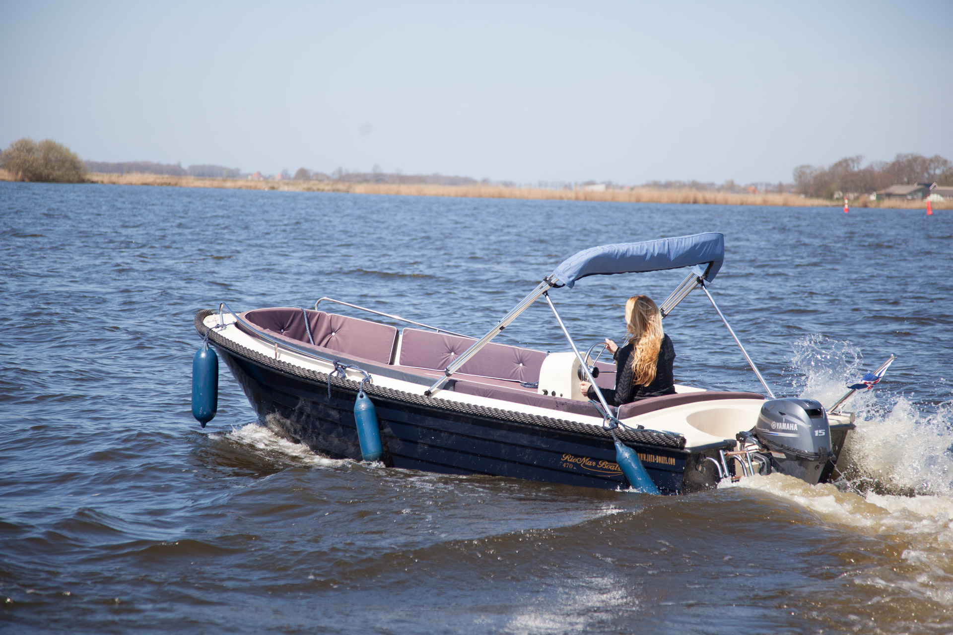 bietet Platz bis max. 5 Personen. Das Boot hat einen 15 PS Außenbordmotor mit Elektrostarter. Im Boot sind bequeme Polster zum Sitzen. Es ist ein leicht zu bedienen und auch für ungeübte Kapitäne leicht zu handhaben. Mit diesem Boot werden Sie und ihre Kinder viel Spass beim Erkunden der Wasserwege in der Region haben. Die friesischen Seen und Kanäle laden buchstäblich zum Chillen und Relaxen ein.
