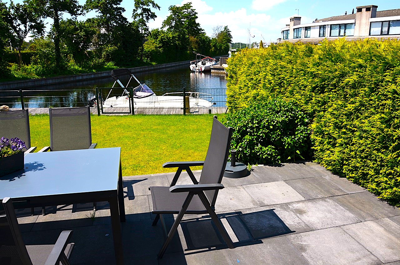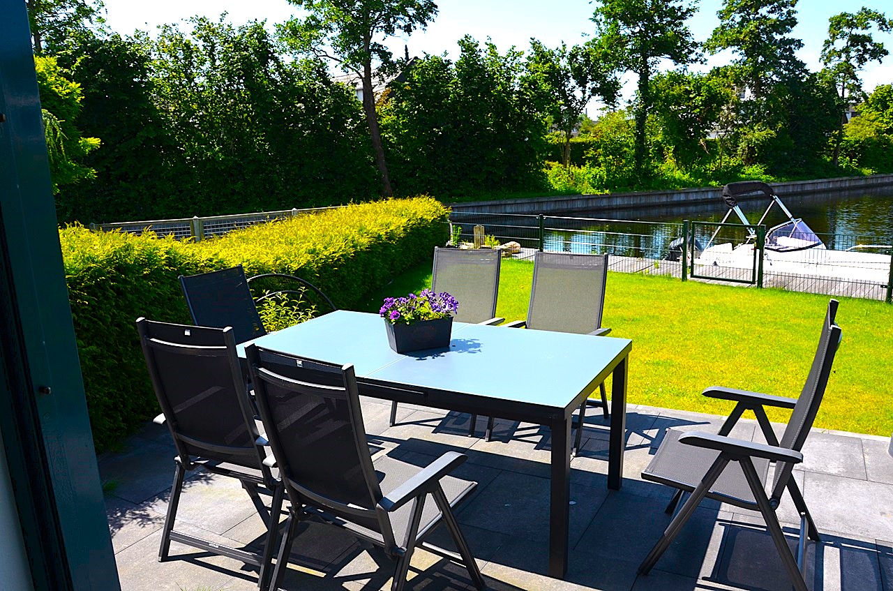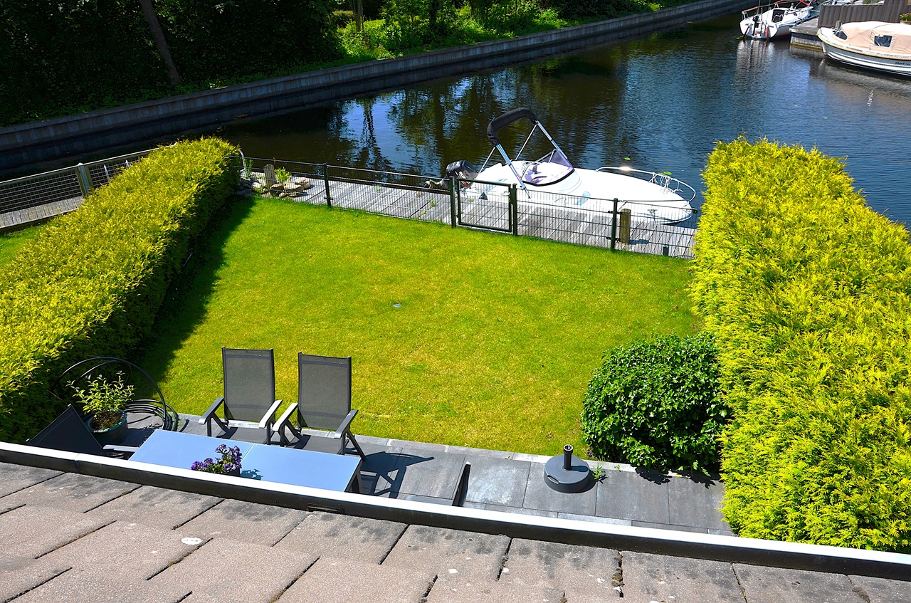 Es erwartet Sie ein liebevoll groß angelegter und gepflegter Garten mit Rasenfläche, 2 Terassen, sowie ein 10 m Bootssteg.