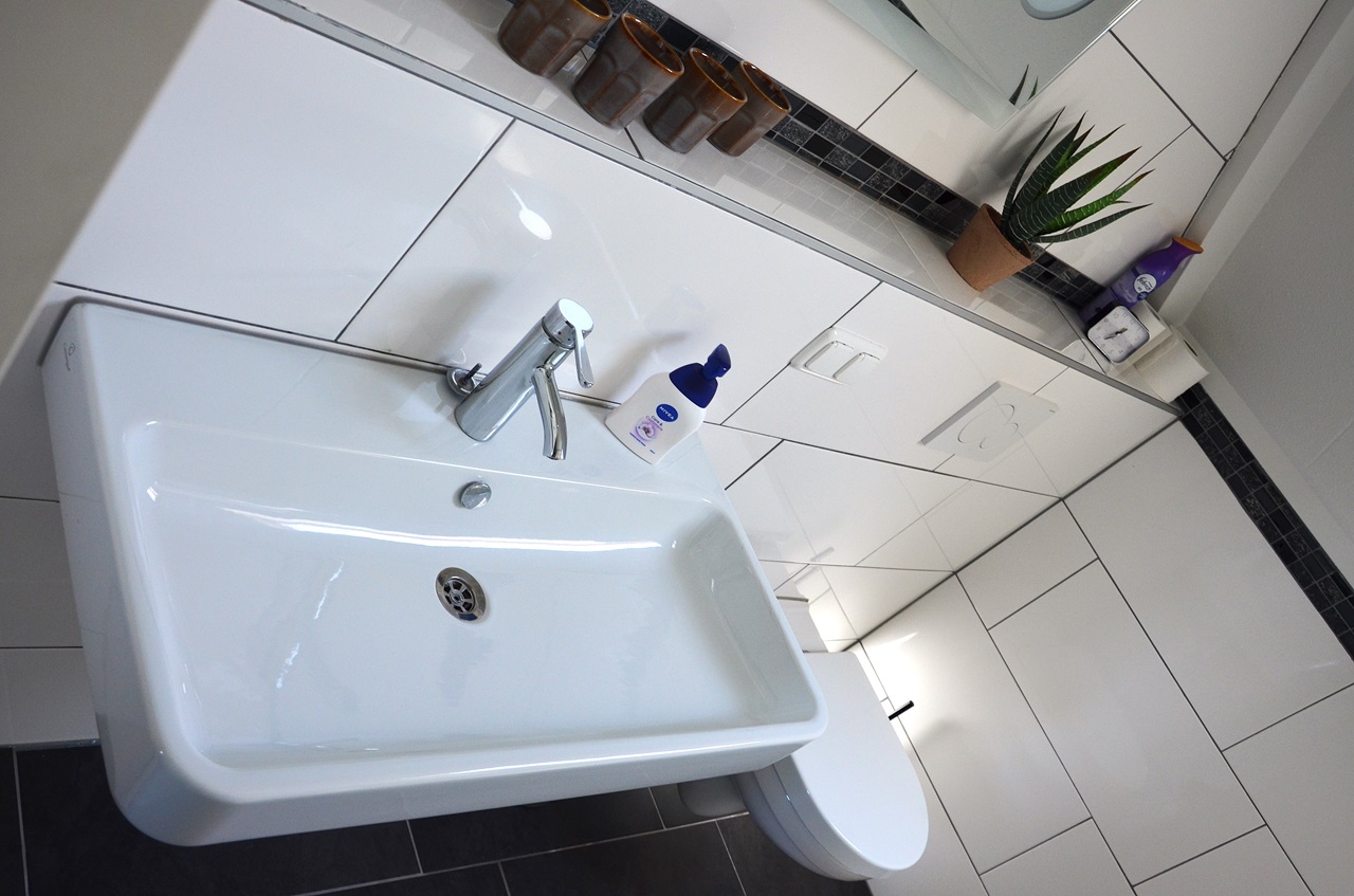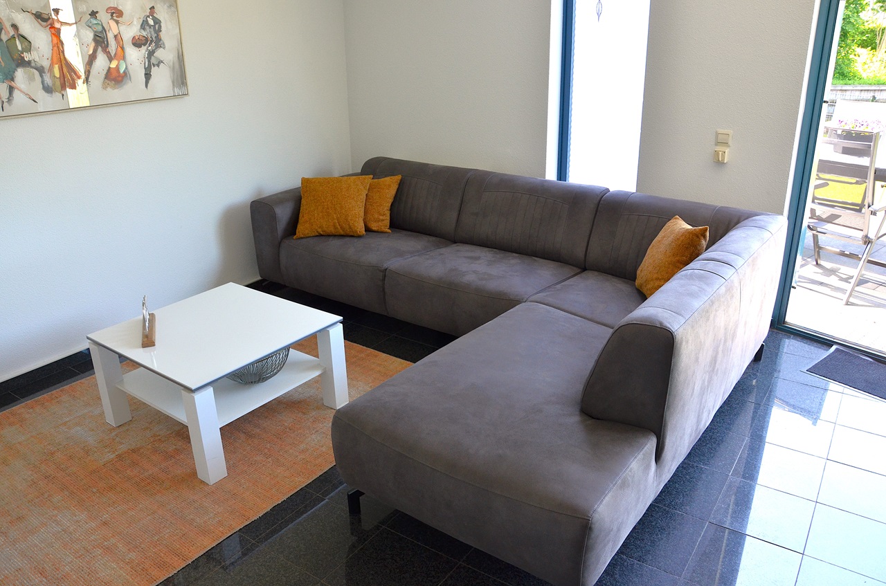 Im Haupthaus befindet sich das gemütliche Wohnzimmer, eine Küchenzeile und zwei Schlafzimmer, sowie die Dusche und die Toilette.